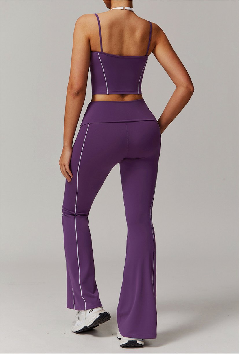 - Fitted top + flared leggings combo