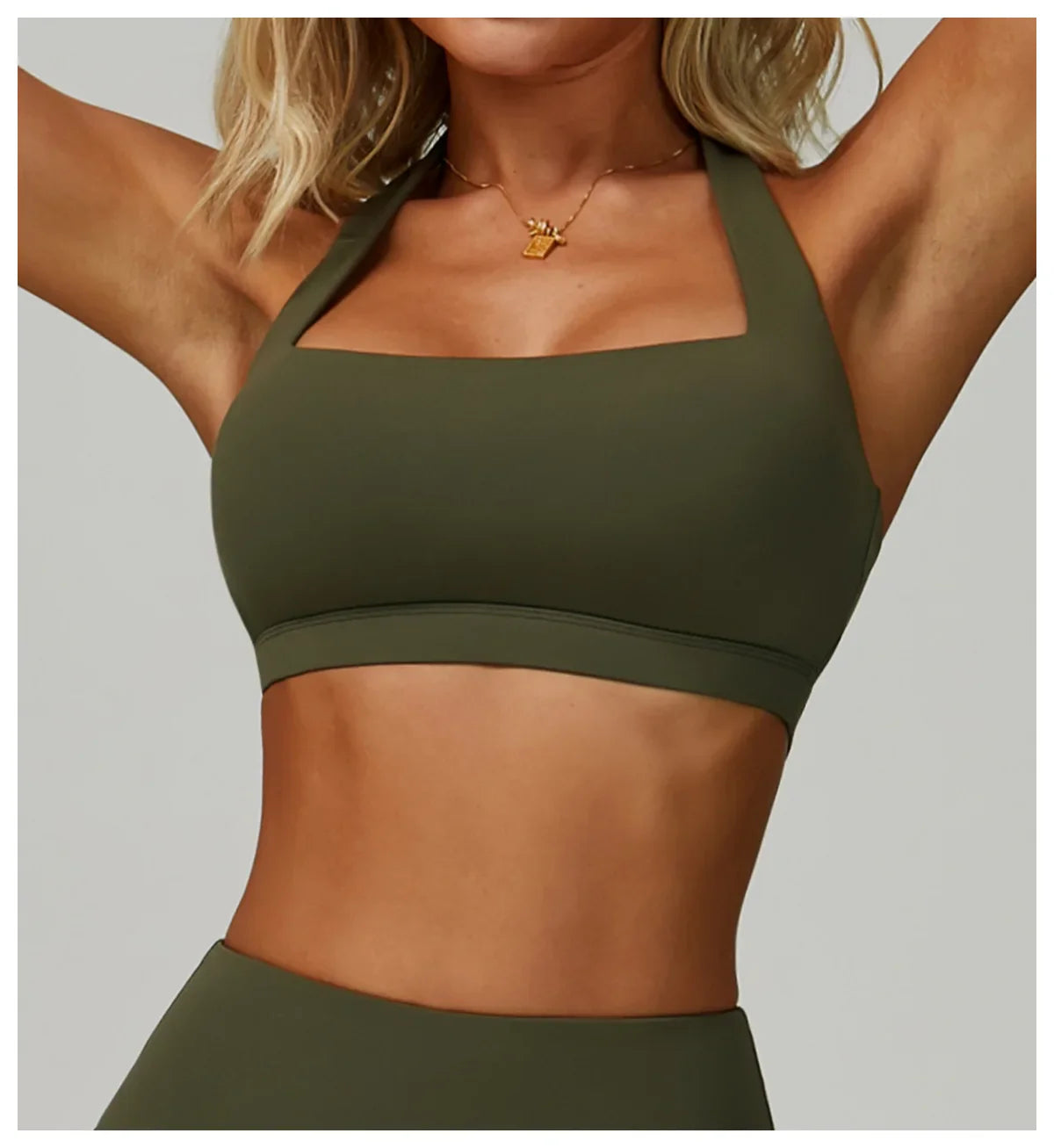 The Muse Halter is a sculpting open-back bra designed to feel soft, feminine and strong. Its halter neckline and wide straps flatter the upper body while allowing full freedom to move, breathe, and glow.